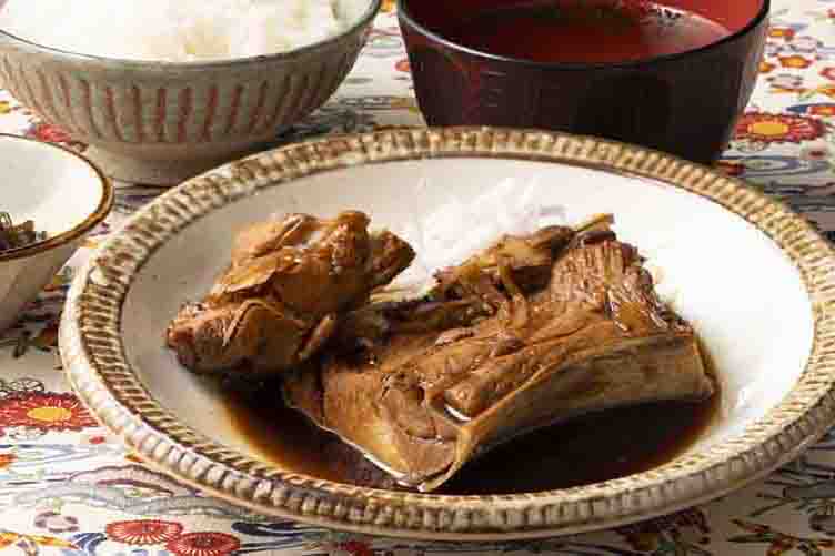 甘辛い煮汁で、ほろりとほどけるほど柔らかく丁寧に煮込みました。